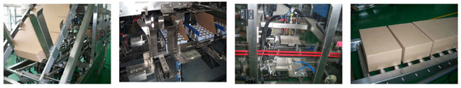 本機由包裝主機和進料輸送部分組成三合一包裝機,能自動完成產品輸送,紙箱成型,產品裝入,噴膠,粘合,成品輸出。廣泛應用于食品,日化等行業,如奶粉,啤酒,飲料,方便面,洗滌劑,盒裝洗衣粉,肥皂等。